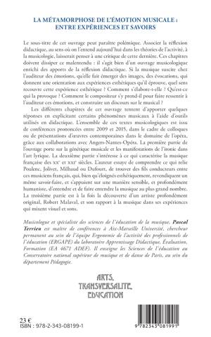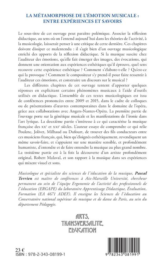 Si la musique suscite chez l'auditeur des émotions, qu'elle fait émerger des images, des évocations, qui donnent une orientation aux expériences esthétiques qu'il éprouve, quel sens recouvre cette expérience esthétique ? Comme s'élabore-t-elle ? Qu'est-ce qui la provoque ? Comment le compositeur s'y prend-il pour faire ressentir à l'auditeur ces émotions, et construire un discours sur le musical ? Cet ouvrage musicologique tente d'apporter quelques réponses en explicitant certains phénomènes musicaux à l'aide d'outils utilisés en didactique.