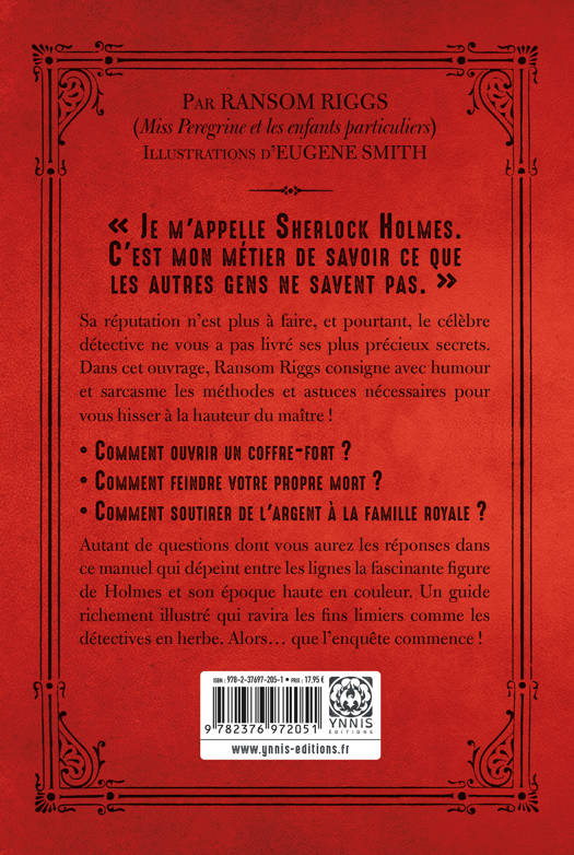 Sa réputation n'est plus à faire, et pourtant, le célèbre détective ne vous a pas livré ses plus précieux secrets. Dans cet ouvrage, Ransom Riggs consigne avec humour et sarcasme les méthodes et astuces nécessaires pour vous hisser à la hauteur du maître !