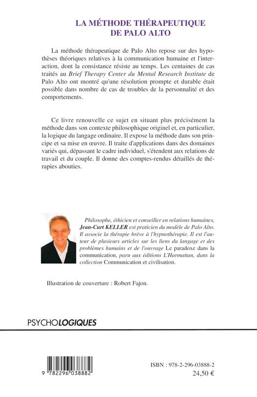 La méthode thérapeutique de Palo Alto repose sur des hypothèses théoriques relatives à la communication humaine et l'interaction, dont la consistance résiste au temps. Les centaines de cas traités au Brief Therapy CenterduMental Research Institute de Palo Alto ont montré qu'une résolution prompte et durable était possible dans nombre de cas de troubles de la personnalité et des comportements.