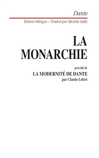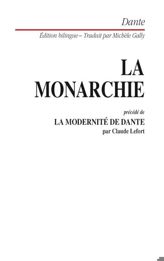 Dante le poète fut aussi un penseur politique. L'universalité humaine qu'il conçoit ici apparaît comme la fin et la source de l'autorité politique, au-delà du Monarque lui-même qui n'en est que l'incarnation. Ce bref traité est précédé d'un important essai de Claude Lefort, qui éclaire le dialogue qu'ont noué avec Dante des penseurs attachés à l'idée de l'humanité.