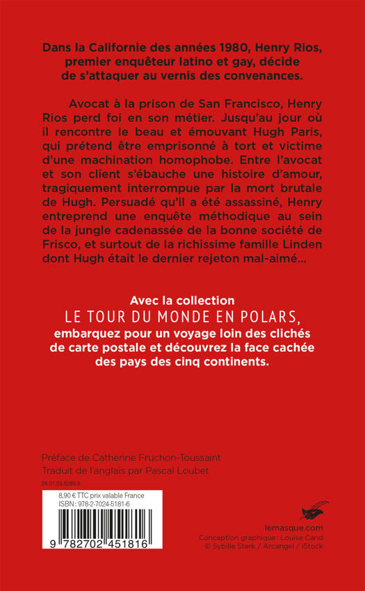 Dans la Californie des années 1980, Henry Rios, premier enquêteur latino et gay, décide de s’attaquer au vernis des convenances. Avocat à la prison de San Francisco, Henry Rios perd foi en son métier. Jusqu’au jour où il rencontre le beau et émouvant Hugh Paris, qui prétend être emprisonné à tort et victime d’une machination homophobe. Entre l’avocat et son client s’ébauche une histoire d’amour, tragiquement interrompue par la mort brutale de Hugh. Persuadé qu’il a été assassiné, Henry entreprend une enquête méthodique au sein de la jungle cadenassée de la bonne société de Frisco, et surtout de la richissime famille Linden dont Hugh était le dernier rejeton mal-aimé...