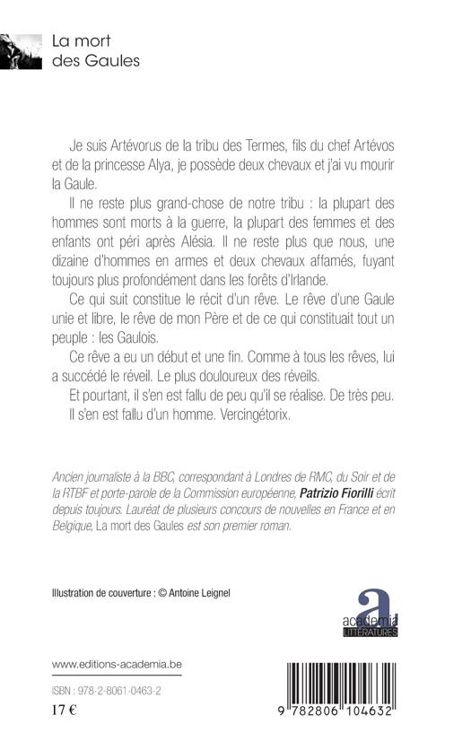 Un squelette et un manuscrit vieux de 2.000 ans découverts en Irlande. Un texte qui révèle le plus grand secret de la guerre des Gaules : Le véritable architecte du soulèvement gaulois contre César n'était pas Vercingétorix, mais Artévos, le chef d'une tribu aujourd'hui oubliée. Un récit d'émotions, d'espoirs insensés et de désespoirs sans fond conté par un jeune guerrier candide, un témoin timide, dépassé et emporté par les événements.