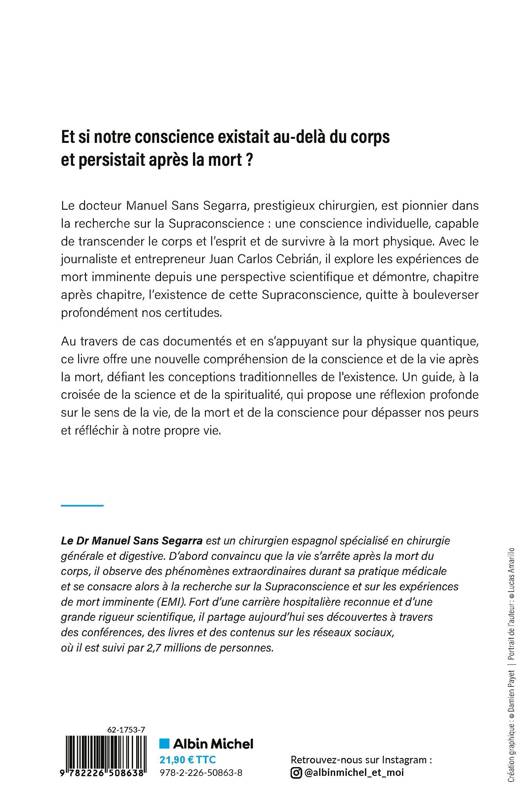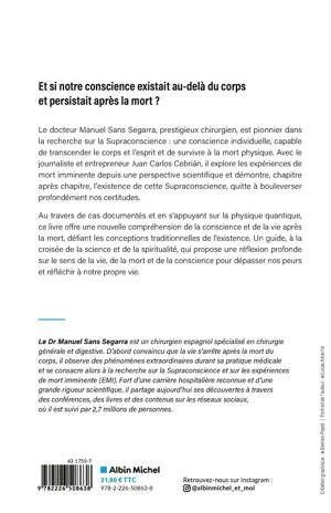 Le docteur Manuel Sans Segarra, prestigieux chirurgien, est pionnier dans la recherche sur la Supraconscience : une conscience individuelle, capable de transcender le corps et l'esprit et de survivre à la mort physique. Avec le journaliste et entrepreneur Juan Carlos Cebrián, il explore les expériences de mort imminente depuis une perspective scientifique et démontre, chapitre après chapitre, l'existence de cette Supraconscience, quitte à bouleverser profondément nos certitudes.