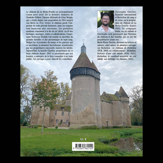 Le château de la Motte-Feuilly est principalement connu pour avoir été la dernière demeure de Charlotte d'Albret, l'épouse délaissée de César Borgia, qui y résida depuis son acquisition en 1504 jusqu'à son décès en 1514. Certes, le château garde l'empreinte de cette période fastueuse, mais ses origines sont beaucoup plus anciennes. Les premières mentions remontent à la fin du XIIe siècle. Au fil des héritages, mariages, ventes et adjudications, l'imposante forteresse féodale voit ensuite se succéder de grandes familles et des personnages de haut rang. Malgré les vicissitudes du temps et les guerres qui se succèdent, la demeure berrichonne, transformée par ses propriétaires successifs, traverse les siècles. Aujourd'hui, la famille Charlier, propriétaire de ce beau château depuis 2003 et passionnée par son histoire, a entrepris de le faire connaître à un vaste public. Cet ouvrage a pour objectif d'y contribuer