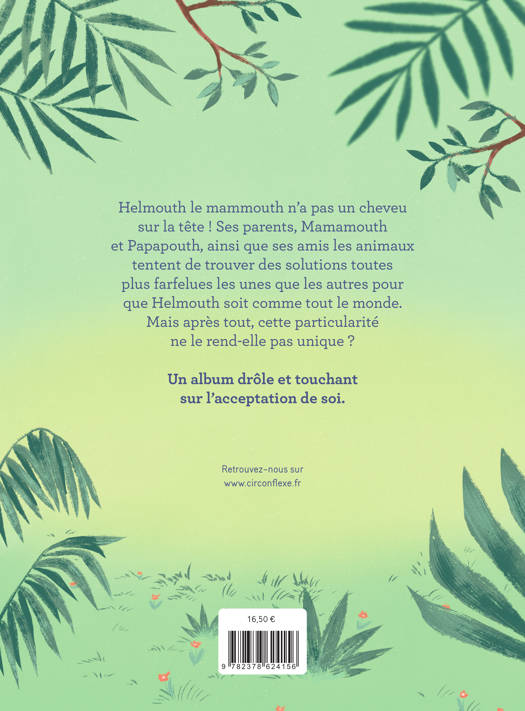 Helmouth le mammouth est né sans un poil sur le caillou et cette particularité lui vaut bien des moqueries. Mamamouth et Papapouth tentent de dissimuler ce petit défaut, jusqu'au jour où une tempête fait s'envoler sa fausse touffe.