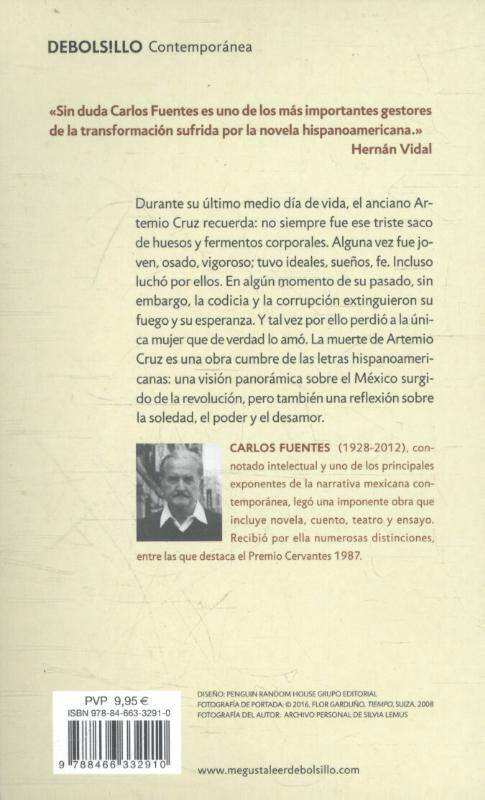 Un clásico de la literatura mexicana del siglo XX, que es a su vez una audaz exploración de las posibilidades de representación en la literatura, a través de la superposición de niveles de tiempo, espacio y consciencia narrativos. «Las revoluciones las hacen los hombres de carne y hueso y no los santos, y todas acaban por crear una nueva casta privilegiada...» En su lecho de muerte, durante su último medio día, el anciano y enfermo Artemio Cruz recuerda: no siempre fue ese triste saco de huesos y fermentos corporales; alguna vez fue joven, osado, vigoroso. Y tuvo ideales, sueños, fe. Para defender todo eso, incluso combatió en una revolución. Mas la rapiña, la codicia y la corrupción extinguieron su fuego y aniquilaron su esperanza. Tal vez por ello perdió a la única mujer que de verdad lo amó. Una reflexión sobre el México surgido de la Revolución Mexicana, pero también de cuestiones tan universales y permanentes como la soledad, el poder o el desamor. La crítica ha dicho...«Excepcional, tanto en su forma de abarcar todo el espectro humano como en la sátira corrosiva y el diálogo mordaz.»The New York Times Book Review «Sin duda Carlos Fuentes es uno de los más importantes gestores de la transformación sufrida por la novela hispanoamericana en los últimos años, y La muerte de Artemio Cruz una de sus obras más conocidas.»Hernán Vidal «Carlos Fuentes organizó esta novela en trece capítulos. En esas escalas, como si fuera un trío de jazz, leemos -escuchamos- un ensamble a contratiempo que va y viene por la mente de un moribundo. Con esa estructura no convencional, la historia fluye -por distintas fugas- a través de seis décadas del siglo XX mexicano. Desde el rural novecento y hasta la más cosmopolita década de los años sesenta, vemos a Artemio Cruz exhibiendo a un tipo que va en un ascenso público constante, pero con una historia interna desintegrada.»Antonio Valle, La Jornada