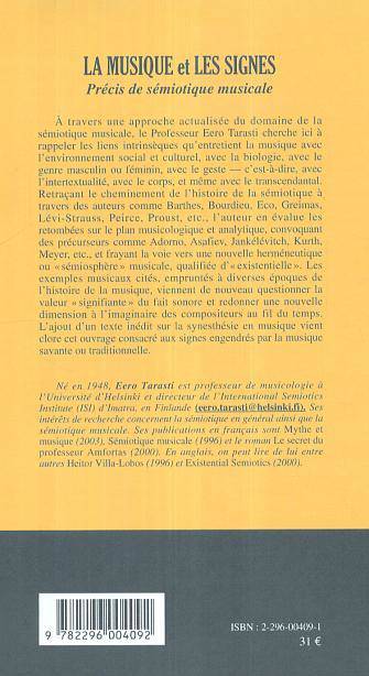 En retraçant le cheminement de l'histoire de la sémiotique à travers des auteurs comme Barthes, Bourdieu et bien d'autres, l'auteur élabore une nouvelle herméneutique ou "sémiosphère" musicale, qualifiée "d'existentielle". Il rappelle les liens qu'entretient la musique avec l'environnement social et culturel, mais aussi avec la biologie, avec le genre, avec le geste, avec le corps et même avec le transcendantal. Un texte inédit sur la synesthésie en musique vient clore cet ouvrage agrémenté de nombreux exemples musicaux.