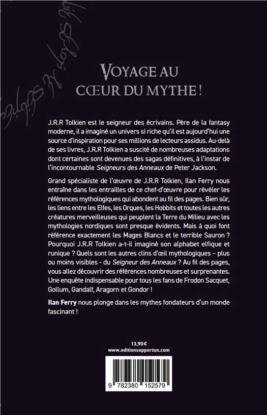 Grand spécialiste de l’œuvre de J.R.R Tolkien, Ilan Ferry nous entraîne dans les entrailles de ce chef-d’œuvre pour révéler les références mythologiques qui abondent au fil des pages. Bien sûr, les liens entre les Elfes, les Orques, les Hobbits et toutes les autres créatures merveilleuses qui peuplent la Terre du Milieu avec les mythologies nordiques sont presque évidents. Mais à quoi font référence exactement les Mages Blancs et le terrible Sauron ? Pourquoi J.R.R Tolkien a-t-il imaginé son alphabet elfique et runique ? Quels sont les autres clins d’œil mythologiques – plus ou moins visibles - du Seigneur des Anneaux ? Au fil des pages, vous allez découvrir des références nombreuses et surprenantes. Une enquête indispensable pour tous les fans de Frodon Sacquet, Gollum, Gandalf, Aragorn et Gondor !