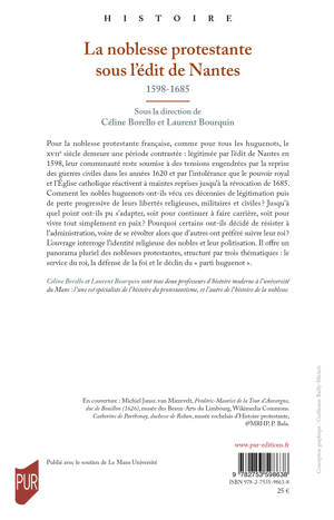 Pour la noblesse protestante française, comme pour tous les huguenots, le XVIIe siècle demeure une période contrastée : légitimée par l’édit de Nantes en 1598, leur communauté reste soumise à des tensions engendrées par la reprise des guerres civiles dans les années 1620 et par l’intolérance que le pouvoir royal et l’Église catholique réactivent à maintes reprises jusqu’à la révocation de 1685. Comment les nobles huguenots ont-ils vécu ces décennies de légitimation puis de perte progressive de leurs libertés religieuses, militaires et civiles ? Jusqu’à quel point ont-ils pu s’adapter, soit pour continuer à faire carrière, soit pour vivre tout simplement en paix ? Pourquoi certains ont-ils décidé de résister à l’administration, voire de se révolter alors que d’autres ont préféré suivre leur roi ? L’ouvrage interroge l’identité religieuse des nobles et leur politisation. Il offre un panorama pluriel des noblesses protestantes, structuré par trois thématiques : le service du roi, la défense de la foi et le déclin du « parti huguenot ».