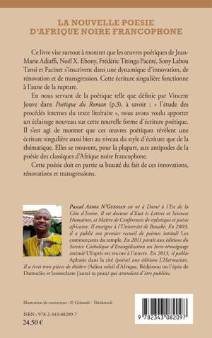Ce livre vise surtout à montrer que les oeuvres poétiques de Jean-Marie Adiaffi, Noël X. Ebony, Frédéric Titinga Pacéré, Sony Labou Tansi et Facinet s'inscrivent dans une dynamique d'innovation, de rénovation et de transgression. Cette écriture singulière fonctionne à l'aune de la rupture. Ces oeuvres poétiques révèlent une écriture singulière aussi bien au niveau du style d'écriture que de la thématique. Elles se trouvent aux antipodes de la poésie des classiques d'Afrique noire francophone.