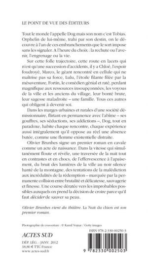Olivier Brunhes signe un premier roman en cavale comme un acte de naissance. Dans la vitesse qui simultanément floute et révèle, une traversée de la nuit tout en contrastes et en chocs, de l'effervescence à l'apaisement, du bruit des lumières de la ville au noir silence hanté de la montagne, des tentations de la malédiction aux incrédulités de la rédemption - marquée par la permanente collision entre brutalité et délicatesse, sauvagerie et finesse. Une course dératée vers les improbables possibles auxquels on prend la décision de croire parce qu'il faut «décider »de sauver sa peau.