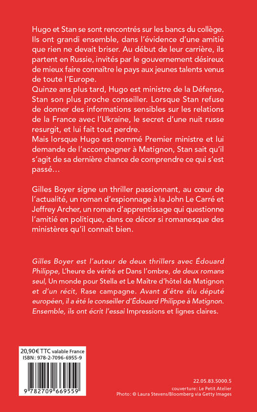 Gilles Boyer signe un thriller passionnant, au cœur de l’actualité, un roman d’espionnage à la John Le Carré et Jeffrey Archer, un roman d’apprentissage qui questionne l’amitié en politique, dans ce décor si romanesque des ministères qu’il connaît bien.