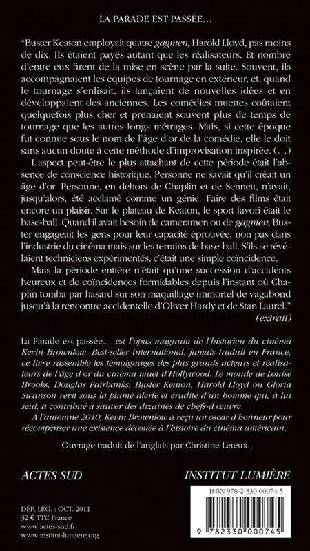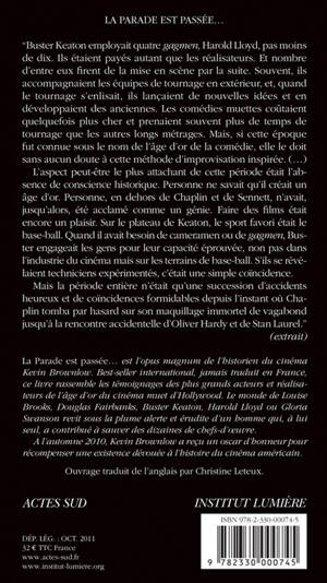 «La Parade est passée »est l'«opus magnum» de l'historien du cinéma muet Kevin Brownlow. Best-seller international, jamais traduit en France, ce livre rassemble les témoignages des plus grands acteurs et réalisateurs de l'âge d'or du cinéma muet d'Hollywood. Au fil des pages, le monde de Louise Brooks, Douglas Fairbanks, Buster Keaton ou Gloria Swanson revit sous la plume alerte et érudite d'un homme qui, à lui seul, a contribué à sauver des dizaines de chefs d'oeuvres du cinéma américain.
