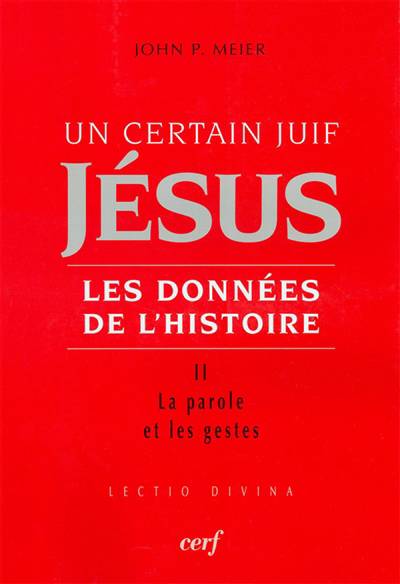 « Esquisser un portrait raisonnablement fiable du Jésus historique. » Dans un premier volume, J.P. Meier a délimité les possibilités et les moyens d'atteindre cet objectif. Puis il a situé dans cette perspective les origines de Jésus, son milieu social, culturel et religieux, ses appartenances familiales, et établi la gamme des dates des événements les plus marquants de la vie de Jésus. Le tome II braque le projecteur sur Jésus lui-même, sur Jésus seul, sur Jésus tel qu'il apparaissait dans son message très particulier et dans ses actions tout à fait étonnantes. Une première interrogation, aujourd'hui fort débattue, ouvre le volume : l'importance des attaches de Jésus avec Jean le Baptiste. Dans quelle mesure Jésus a-t-il partagé les pratiques et le message de ce prophète qui convoquait les foules pour un baptême de repentir et appelait à un changement radical de vie en vue du jour proche du jugement de Dieu ? L'auteur cherche ensuite comment prit corps le message propre de Jésus, fondamentalement enraciné dans la foi et les attentes juives de son temps mais affirmant d'autorité la venue d'un temps nouveau. Il essaie de le capter autant que possible de la bouche même de Jésus et dans les termes employés par lui. C'était essentiellement l'annonce d'un royaume de Dieu, paradoxalement futur et à l'oeuvre « au milieu de vous ». Quelle est, dans son contexte d'origine, la portée de cette annonce, illustrée par des béatitudes déroutantes et jusque dans une prière nouvelle ? Ce royaume est annoncé tout autant par des actes, ces gestes de Jésus que lui-même et ses disciples ont compris comme des miracles. Simples pratiques de thaumaturge, voire de magicien, que ces nombreuses actions rapportées dans la chronique des évangiles ? Quels gestes ont effectivement été posés, dans quelles circonstances et pour quoi faire ? Un tel décapage des textes aboutit à des réponses qui ne peuvent qu'être partielles, parfois problématiques. Mais combien précieuses ! C'est la seule démarche qui donne une consistance réelle à ce que l'on peut affirmer, sur le plan rigoureux de la science historique, de la figure de Jésus de Nazareth.
