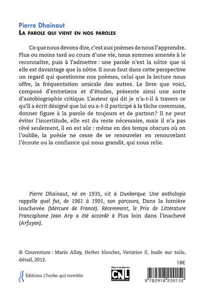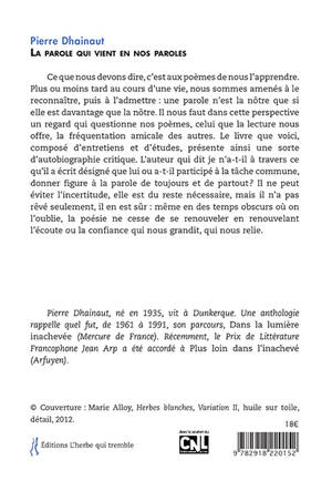 Ce que nous devons dire, c'est aux poèmes de nous l'apprendre. Plus ou moins tard au cours d'une vie, nous sommes amenés à le reconnaître, puis à l'admettre : une parole n'est la nôtre que si elle est davantage que la nôtre. Il nous faut dans cette perspective un regard qui questionne nos poèmes, celui que la lecture nous offre, la fréquentation amicale des autres. Le livre que voici, composé d'entretiens et d'études, présente ainsi une sorte d'autobiographie critique. L'auteur qui dit je n'a-t-il à travers ce qu'il a écrit désigné que lui ou a-t-il participé à la tâche commune, donner figure à la parole de toujours et de partout ? Il ne peut éviter l'incertitude, elle est du reste nécessaire, mais il n'a pas rêvé seulement, il en est sûr : même en des temps obscurs où on l'oublie, la poésie ne cesse de se renouveler en renouvelant l'écoute ou la confiance qui nous grandit, qui nous relie.