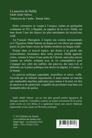 Poète visionnaire se vouant à l’errance, maître en spiritualité condamné en 922, à Bagdad, au supplice de la croix, Hallâj est sans doute l’une des figures les plus attachantes du mysticisme soufi. Au Français Massignon, il inspire une somme monumentale et à l’Égyptien Abdel Sabour un drame en vers libres qui compte parmi les plus beaux textes du théâtre moderne en langue arabe. Projeté dans ce nouvel espace, qui donne à sa parole une extraordinaire résonnance dans notre présent, Hallâj apparaît, certes, comme le héros d’une quête de l’absolu, mais plus encore comme un rebelle, rompant avec la vie contemplative pour s’engager aux côtés des oubliés, des pauvres, des sans-voix et défendre sur la place publique leur droit à la dignité, à l’équité, à la beauté. Le pouvoir politique cependant, sourcilleux et retors, veille. Secondé par un tribunal inquisitorial, il saura mettre en marche une implacable machine judiciaire pour mener à la mort cet être de passion et de générosité, coupable de proclamer trop haut son insatiable désir de justice.