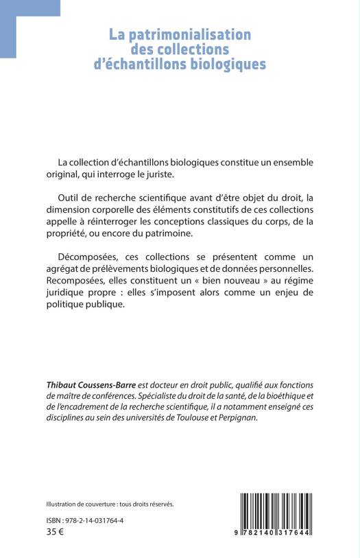 La collection d'échantillons biologiques constitue un ensemble original, qui interroge le juriste. Outil de recherche scientifique avant d'être objet du droit, la dimension corporelle des éléments constitutifs de ces collections appelle à réinterroger les conceptions classiques du corps, de la propriété, ou encore du patrimoine. Décomposées, ces collections se présentent comme un agrégat de prélèvements biologiques et de données personnelles. Recomposées, elles constituent un bien nouveau au régime juridique propre: elles s'imposent alors comme un enjeu de politique publique.