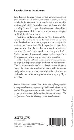 Pour Rose et Louise, l'heure est aux renoncements : la première affronte un divorce, son corps en abîme, sa colère sourde, la deuxième se débat avec le réel et un "trouble anxieux généralisé". Entre elles se trouve Jenna, sexualité revendiquée sous les regards, invariablement à l'équilibre. Jenna qu'un coup de fil va surprendre un matin : son père est à l'hôpital. C'est le coeur. Précipitées sur la route à l'orée de l'été, direction l'Auvergne et la famille de Jenna, les trois trentenaires vont alors faire le choix de la césure, cap sur la côte basque. En espérant que l'océan leur offre du répit face à la peur de la perte, et tous les plaisirs des vacances improvisées : rencontres éphémères, caresses des embruns, peaux dorées, étreintes sous des draps aux odeurs neuves. Le temps d'une échappée, apprendre à respirer sans entraves, enfin. "La Peau des filles" est le roman solaire d'une transformation, celle qui suit le passage à l'âge adulte et ses étonnements. C'est la découverte de ce qu'est la liberté, intime, véritable, dense ; la réconciliation dans un grand éclat de rire et quelques larmes sous la pluie - une dernière fois - avec sa chair, celle des autres, et l'espace souvent opaque qu'il y a au milieu.