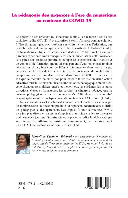 La pédagogie des urgences (ou l'inclusion digitale), en réponse à cette crise sanitaire inédite COVID-19 et aux crises à venir, s'impose comme solution, à l'ère du numérique, pour atténuer ses effets pervers sur l'éducation, par la mobilisation du numérique éducatif, les Formations A Distance (FAD), les formations en ligne, et l'éducation à distance. Ce livre met en exergue plusieurs expériences montrant que « les effets immédiats de cette croissance sont gérés sans toujours prendre en compte les ajustements de structure et de contenus de formation qu'un tel changement d'environnement rendrait nécessaires. Ainsi, beaucoup de FOAD, intéressantes dans leur principe, ne pourront être conduites à leur terme, la contrainte de scolarisation l'emportant souvent sur d'autres considérations ». COVID-19 ou pas, on sait que le médium ne suffit pas pour obtenir la réalisation d'une action éducative réussie.