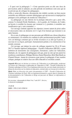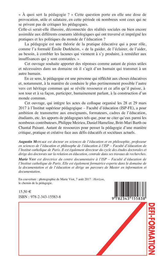 « À quoi sert la pédagogie ? » La pédagogie est une théorie de la pratique éducative qui a pour rôle, « de la guider, de l'éclairer, de l'aider, au besoin, à combler les lacunes qui viennent à s'y produire, à remédier aux insuffisances qui y sont constatées » (E. Durkheim). L'ouvrage tente d'apporter des réponses dans un domaine où il s'agit d'un humain qui transmet à un autre humain.