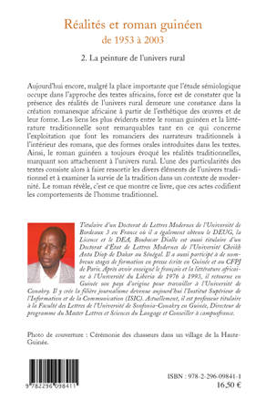 Aujourd'hui encore, malgré la place importante que l'étude sémiologique occupe dans l'approche des textes africains, force est de constater que la présence des réalités de l'univers rural demeure une constante dans la création romanesque africaine à partir de l'esthétique des oeuvres et de leur forme. Le roman guinéen a toujours évoqué les réalités traditionnelles, marquant son attachement à l'univers rural.