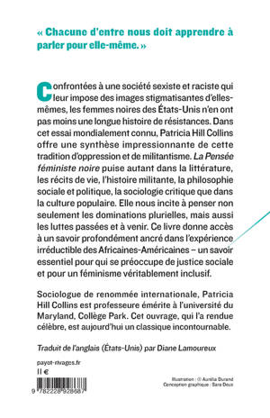 Confrontées à une société sexiste et raciste qui leur impose des images stigmatisantes d'elles-mêmes, les femmes noires des États- Unis n'en ont pas moins une longue histoire de résistances. Dans cet essai mondialement connu, Patricia Hill Collins offre une synthèse impressionnante de cette tradition d'oppression et de militantisme. "La Pensée féministe noire" puise autant dans la littérature, les récits de vie, l'histoire militante, la philosophie sociale et politique, la sociologie critique que dans la culture populaire. Elle nous incite à penser non seulement les dominations plurielles, mais aussi les luttes passées et à venir. Ce livre donne accès à un savoir profondément ancré dans l'expérience irréductible des Africaines-Américaines - un savoir essentiel pour qui se préoccupe de justice sociale et pour un féminisme véritablement inclusif.