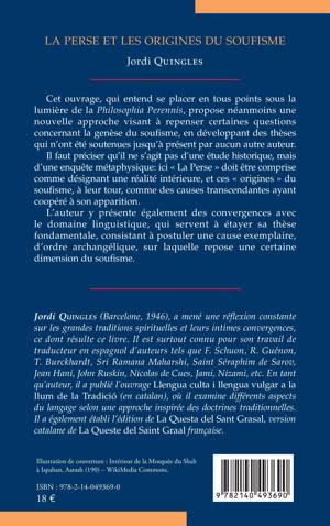 Cet ouvrage, qui entend se placer en tous points sous la lumière de la Philosophia Perennis, propose néanmoins une nouvelle approche visant à repenser certaines questions concernant la genèse du soufisme, en développant des thèses qui n'ont été soutenues jusqu'à présent par aucun autre auteur. Il faut préciser qu'il ne s'agit pas d'une étude historique, mais d'une enquête métaphysique: ici La Perse doit être comprise comme désignant une réalité intérieure, et ces origines du soufisme, à leur tour, comme des causes transcendantes ayant coopéré à son apparition. L'auteur y présente également des convergences avec le domaine linguistique, qui servent à étayer sa thèse fondamentale, consistant à postuler une cause exemplaire, d'ordre archangélique, sur laquelle repose une certaine dimension du soufisme.