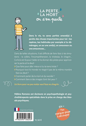 Dans de telles situations, il est difficile de faire face à tes émotions : la colère, l’incompréhension, la tristesse, le chagrin… Ce livre est là pour t’aider et te donner des pistes pour apprivoiser la perte et le deuil :