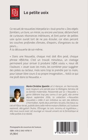 Ce recueil de nouvelles interpelle le « tout-proche ». Des objets familiers, un livre, un miroir, ou encore une tasse, déclenchent de curieuses résonances intérieures, et font parler de petites voix qu'on aurait tort de ne pas écouter, car elles percent les couches profondes d'envies, d'espoirs, d'angoisses ou de peurs... À la découverte de soi-même.