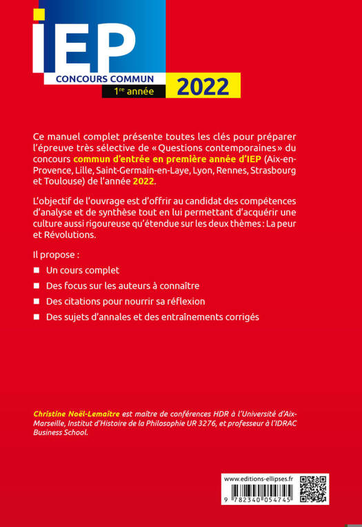 Ce manuel complet présente toutes les clés pour préparer l’épreuve très sélective de « Questions contemporaines » du concours commun d’entrée en première année d’IEP (Aix-en-Provence, Lille, Saint-Germain-en-Laye, Lyon, Rennes, Strasbourg et Toulouse) de l’année 2022.