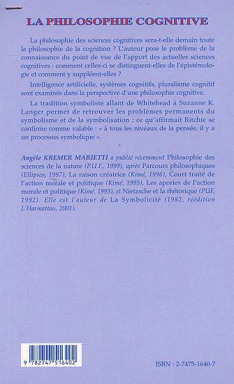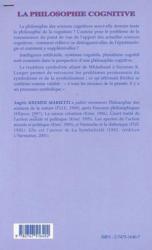 La philosophie des sciences cognitives sera-t-elle demain toute la philosophie de la cognition ? L'auteur pose le problème de la connaissance du point de vue de l'apport des actuelles sciences cognitives : comment celles-ci se distinguent-elles de l'épistémologie et comment y suppléent-elle ? Intelligence artificielle, systèmes cognitifs, pluralisme cognitif sont examinés dans la perspective d'une philosophie cognitive.