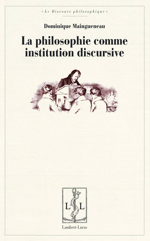 Si l’on veut ainsi appréhender la philosophie comme discours, la « scène d’énonciation », qui n’est réductible ni au texte ni à une situation de communication qu’on pourrait décrire de l’extérieur, est amenée à jouer un rôle crucial. Une théorie du discours ne se contente pas, en effet, d’articuler texte et contexte, car cela reviendrait à présupposer le partage même qu’elle entend surmonter. Elle met en évidence une activité énonciative qui doit gérer sa présence à la fois dans le monde qu’elle construit et dans le monde où elle se construit, une activité qui doit légitimer la situation d’énonciation dont elle prétend surgir. On peut dès lors parler d’une institution discursive de la philosophie, par laquelle se nouent l’institution comme processus de construction d’une légitimité, et l’institution comme appareil organisant une pratique : la structure du champ, le statut du philosophe, les genres… À travers le monde qu’elle confi gure en déployant son texte, l’énonciation réfléchit en les légitimant les conditions de sa propre activité. L’institution discursive est ainsi le mouvement par lequel passent l’un dans l’autre, pour s’étayer, l’oeuvre et ses conditions d’énonciation.