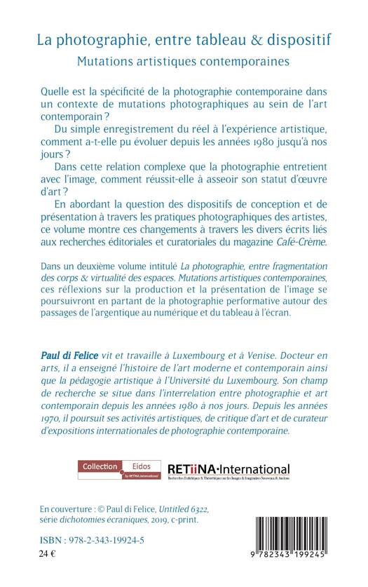 Quelle est la spécificité de la photographie contemporaine dans un contexte de mutations photographiques au sein de l’art contemporain ? Du simple enregistrement du réel à l’expérience artistique, comment a-t-elle pu évoluer depuis les années 1980 ? Dans sa relation complexe à l’image, comment réussit-elle à asseoir son statut d’oeuvre d’art ?Cet ouvrage aborde la question des dispositifs de conception et de présentation à travers les pratiques des photographes, en lien notamment aux écrits et recherches du magazine Café-Crème.