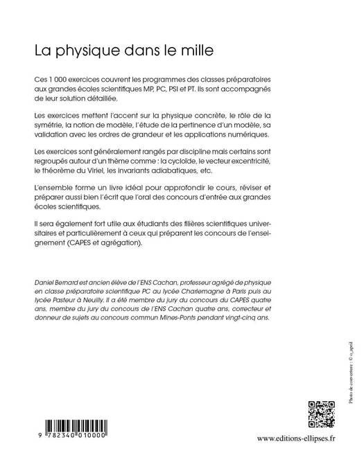 Ces 1 000 exercices couvrent les programmes des classes préparatoires aux grandes écoles scientifiques MP, PC, PSI et PT. Ils sont accompagnés de leur solution détaillée.
