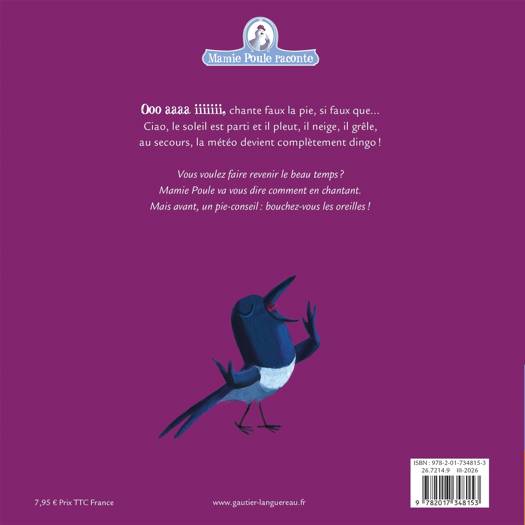 Qui a dit que tous les oiseaux chantaient bien ? Une pie, ancienne chanteuse d’opéra, s’époumone même si elle a perdu sa voix. Elle chante si faux que même le Soleil refuse de se montrer. Mais la pie est persuadée qu’elle peut le ramener. Résultat : pluie, neige, tempête, les autres animaux sont désespérés. Réussiront-ils à faire revenir le Soleil ?