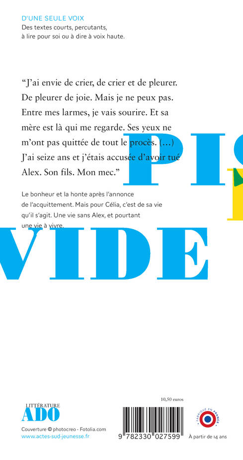 Verdict : acquittée. Célia a honte d'être heureuse car qu'advient-il de votre conscience quand, à seize ans, on a été accusée d'avoir tué son petit ami ? Une vie fichue - avec l'image obsédante d'un corps étendu sur le carrelage d'une piscine vide - mais une vie à vivre.