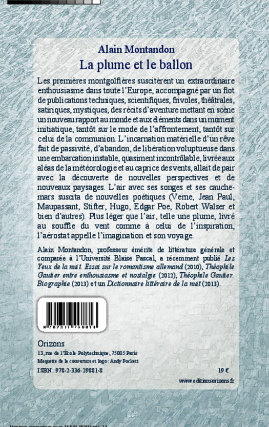 Les premières montgolfières suscitèrent un extraordinaire enthousiasme dans toute l'Europe, accompagné par un flot de publications techniques, scientifiques, frivoles, théâtrales, satiriques, mystiques... L'incarnation matérielle d'un rêve fait de passivité, d'abandon, de libération voluptueuse dans une embarcation instable, allait de pair avec la découverte de nouvelles perspectives et de nouveaux paysages. L'air avec ses songes et ses cauchemars suscita de nouvelles poétiques.