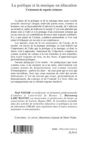 La place de la poétique et de la musique dans notre société actuelle interroge chaque individu, sur sa façon plurielle de s'adresser au monde et de le redresser. Est-ce que ce monde a besoin de ces arts de la communication ? Sont-ils essentiels ou simplement facultatifs ? Sans musique et sans poétique le monde se reconnaîtrait-il vague et vide ? L'éducation est comprise ici comme système de valeurs à la fois formelles et non formelles, elle doit rester toujours un lieu d'apprentissages profondément poétiques.