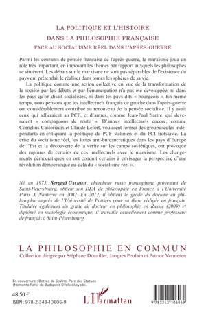 Parmi les courants de pensée française de l'après-guerre, le marxisme joua un rôle très important, en imposant les thèmes par rapport auxquels les philosophes se situèrent. Les débats sur le marxisme sont inséparables de l'existence du pays qui prétendait le réaliser dans toutes les sphères de la vie (URSS). La politique, comme action collective en vue de la transformation de la société par les débats et l'émancipation, n'a pourtant pas été développée : ni dans les États socialistes, ni dans les États bourgeois. En même temps, les intellectuels français de gauche dans l'après-guerre ont considérablement contribué au renouveau de la pensée socialiste.