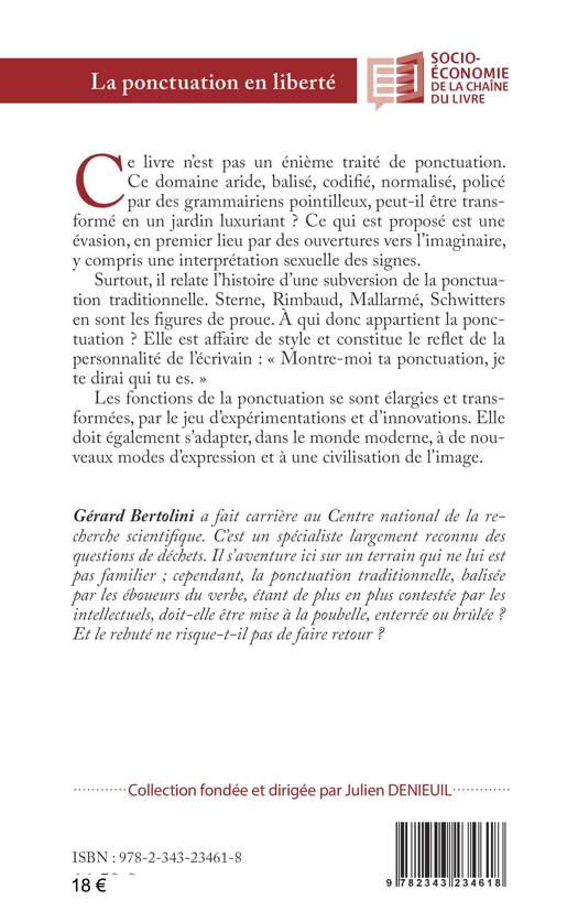 Ce livre n'est pas un énième traité de ponctuation. Ce domaine aride, balisé, codifié, normalisé, policé par des grammairiens pointilleux, peut-il être trans-formé en un jardin luxuriant ? Ce qui est proposé est une évasion, en premier lieu par des ouvertures vers l'imaginaire, y compris une interprétation sexuelle des signes. Surtout, il relate l'histoire d'une subversion de la ponctuation traditionnelle. Sterne, Rimbaud, Mallarmé, Schwitters en sont les figures de proue. À qui donc appartient la ponctuation ? Elle est affaire de style et constitue le reflet de la personnalité de l'écrivain: Montre-moi ta ponctuation, je te dirai qui tu es. Les fonctions de la ponctuation se sont élargies et transformées, par le jeu d'expérimentations et d'innovations. Elle doit également s'adapter, dans le monde moderne, à de nouveaux modes d'expression et à une civilisation de l'image.