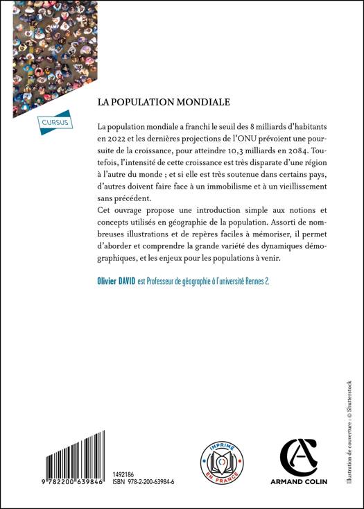 La population mondiale a franchi le seuil des 8 milliards d'habitants en 2022 et les dernières projections de l'ONU prévoient une poursuite de la croissance, pour atteindre 10,3 milliards en 2084. Toutefois, l'intensité de cette croissance est très disparate d’une région à l’autre du monde ; et si elle est très soutenue dans certains pays, d’autres doivent faire face à un immobilisme et à un vieillissement sans précédent. Cet ouvrage propose une introduction simple aux notions et concepts utilisés en géographie de la population. Assorti de nombreuses illustrations et de repères faciles à mémoriser, il permet d’aborder et comprendre la grande variété des dynamiques démographiques, et les enjeux pour les populations à venir.