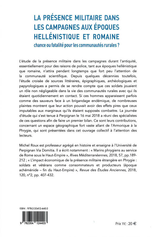 Cet ouvrage constitue la mise au point la plus récente sur la présence militaire de troupes dans les campagnes uax époques hellénistique et romaine, chargées pour l'essentiel de missions de police. Le lecteur y trouvera les derniers acquis de la recherche, basé sur les travaux des meilleurs spécialistes.