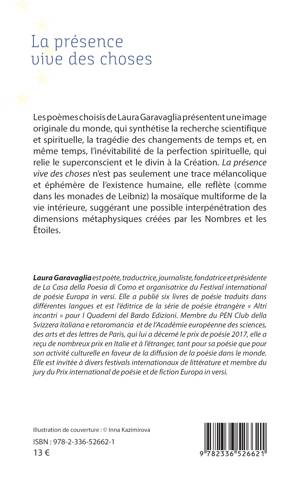 Les poèmes choisis de Laura Garavaglia présentent une image originale du monde, qui synthétise la recherche scientifique et spirituelle, la tragédie des changements de temps et, en même temps, l'inévitabilité de la perfection spirituelle, qui relie le superconscient et le divin à la Création. La présence vive des choses n'est pas seulement une trace mélancolique et éphémère de l'existence humaine, elle reflète (comme dans les monades de Leibniz) la mosaïque multiforme de la vie intérieure, suggérant une possible interpénétration des dimensions métaphysiques créées par les Nombres et les Étoiles.