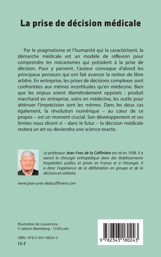 Par le pragmatisme et l'humanité qui la caractérisent, la démarche médicale est un modèle de réflexion pour comprendre les mécanismes qui président à la prise de décision. Pour y parvenir, l'auteur convoque d'abord les principaux penseurs qui ont fait avancer la notion de libre arbitre. En entreprise, les prises de décisions complexes sont confrontées aux mêmes incertitudes qu'en médecine. Bien que les enjeux soient diamétralement opposés : produit marchand en entreprise, soins en médecine, les outils pour atténuer l'imprécision sont les mêmes.