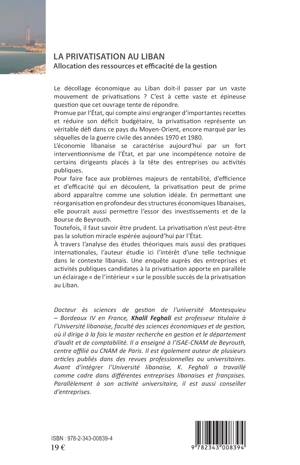 Le décollage économique au Liban doit-il passer par un vaste mouvement de privatisations ? L'économie libanaise se caractérise par un fort interventionnisme de l'Etat et une incompétence notoire de certains dirigeants d'entreprises ou activités publiques. La privatisation est-elle une solution miracle espérée aujourd'hui par l'Etat ? L'auteur étudie ici l'intérêt d'une telle technique dans le contexte libanais.