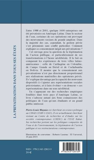 Entre 1988 et 2001, 1600 entreprises ont été privatisées en Amérique Latine. Dans le secteur de l'eau, certaines de ces opérations ont provoqué des mouvements sociaux de grande ampleur. Dans la majorité des cas, cependant, la gestion privée s'est pérennisée sans conflit particulier. Comment expliquer ce consentement inégal aux privatisations ? Cet ouvrage pose la question de la légitimation de l'action publique, et particulièrement de ses transformations à l'heure néolibérale.