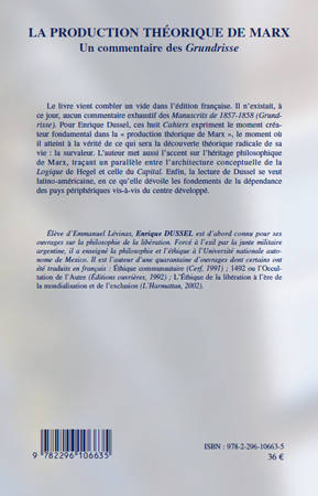 Il n'existait à ce jour aucun commentaire exhaustif des manuscrits de 1857 et 1858 (Gundrisse) de Marx. Ces écrits expriment le moment créateur fondamental dans la "production théorique de Marx", le moment où il a atteint à la vérité de ce qui sera la découverte radicale de sa vie : la survaleur. La lecture de Dussel est latino-américaine, soulignant les fondements de la dépendance des pays périphériques vis-à-vis du centre développé.