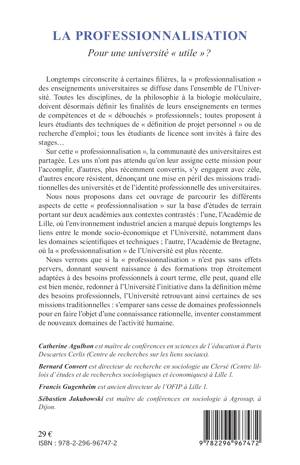 La "professionnalisation" se diffuse à l'ensemble de l'Université. Toutes les disciplines doivent définir les finalités de leur enseignement en termes de compétences et de débouchés professionnels. Sur cette professionnalisation, la communauté universitaire est partagée. Voici un parcours de ces différents aspects, avec ses effets pervers, mais aussi ses apports.