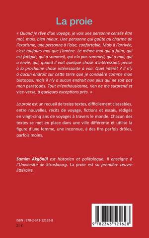 La proie est un recueil de treize textes, difficilement classables, entre nouvelles, récits de voyages, fictions et essais, rédigés en vingt-cinq ans de voyages à travers le monde. Chacun des textes se met en place dans une ville différente et utilise la figure d'une femme, une inconnue, à des fins parfois drôles, parfois moins.