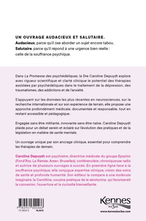 Psychiatre et psychothérapeute, l'auteure analyse le regain d'intérêt scientifique pour les substances psychédéliques, longtemps marginalisées. Elle examine leur potentiel thérapeutique, notamment dans le traitement des pathologies mentales résistantes, et explore les potentialités, les dérives ou encore les enjeux éthiques soulevés par ces nouvelles thérapies.